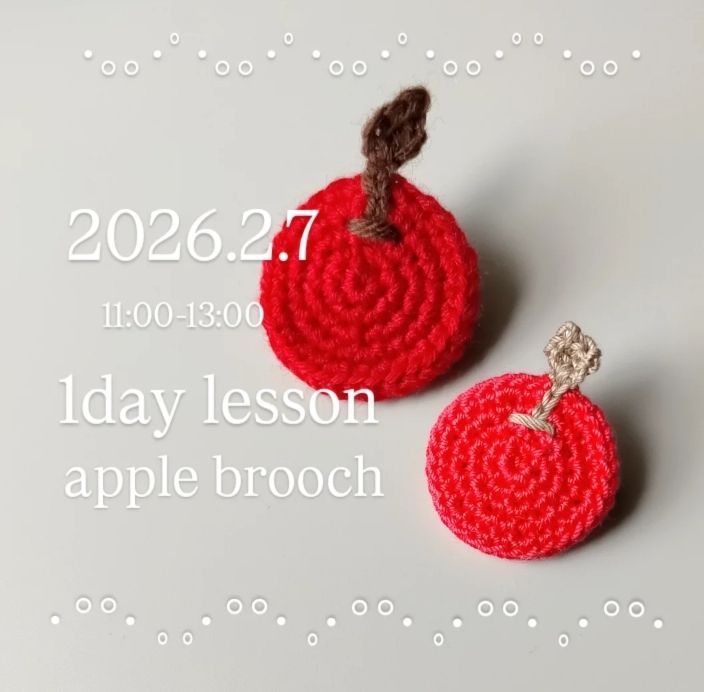 【編み物体験会りんごブローチ1day lessonのお知らせ】